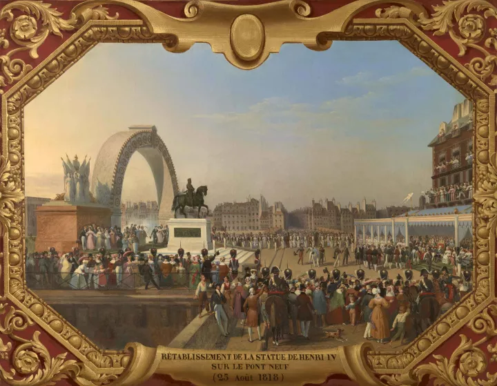 Dans un second temps, l'exposition évoque la figure du roi bienfaiteur et pacificateur qui apparaît dès le XVIIIe siècle, sous l'impulsion de Louis XV et Louis XVI qui voient un intérêt à célébrer le fondateur de la dynastie. Vu comme un remarquable administrateur de son royaume, Henri IV est une figure historique célébrée tout au long du XIXe siècle.