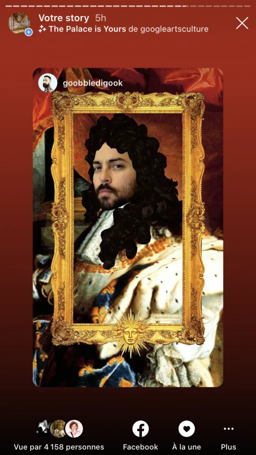 A l’occasion de la première visite en réalité virtuelle du château de Versailles « VersaillesVR: le Château est à vous », Google Arts & Culture a développé le filtre Instagram pour se prendre pour Louis XIV.