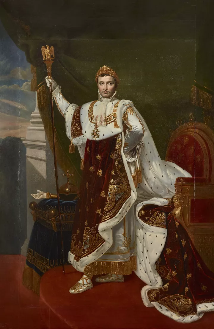 Le tableau du Sacre, qui se trouvait dans cette salle, et qui montre en fait le couronnement de l’impératrice Joséphine, quitta Versailles pour le musée du Louvre, à Paris, en 1889. Il est aujourd’hui remplacé ici par le second exemplaire, peint par David, à Paris puis à Bruxelles, en 1808-1822. Commandé à David par un groupe d’hommes d’affaires américains, ce tableau a été montré à travers les Etats-Unis et l’Europe tout au long du XIXe siècle, avant d’être acquis par Versailles en 1947. Placé dans la salle l’année suivante, il a permis la reconstitution de l’état de ce bel espace tel qu’il avait été voulu par Louis-Philippe.