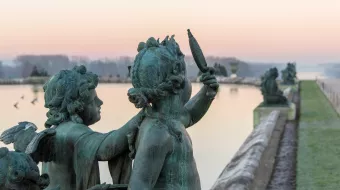 Louis XIV a fait de Versailles l’œuvre de son règne en métamorphosant le pavillon de chasse de son père en l’un des plus majestueux palais d’Europe, mais également en transformant le modeste jardin qui l’entourait alors. Entre les mains du jardinier André Le Nôtre et de ses collaborateurs, parterres et bosquets, statues et fontaines ont pris forme pour faire des jardins de Versailles une œuvre d’art à part entière, qui, encore aujourd’hui, s’apprécie dans son ensemble les jours de Grandes Eaux. Un parcours dans ces jardins vous invite à découvrir l’œuvre de Le Nôtre et à en comprendre l’aménagement et la symbolique au travers d’une sélection de points de vue, de bosquets et de bassins.