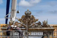 Le château de Versailles restaure actuellement la grille d'honneur, entrée principale du Domaine, et les deux groupes sculptés de Girardon et Marsy qui l'encadrent. L'opération, réalisée grâce au financement du Département des Yvelines, permettra de remettre en état la grille selon les dispositions et ornementations existantes depuis le XIXe siècle. L'habillage de chantier, installé en septembre 2023, sera en place jusqu'au printemps 2024, date à laquelle la grille d'honneur restaurée sera dévoilée au public.