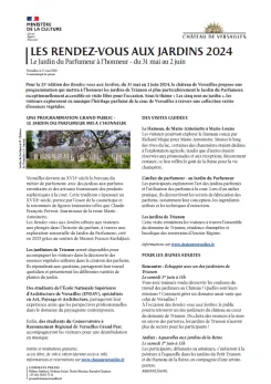 À l'occasion des Rendez-vous aux Jardins, le public pourra retrouver un des jardiniers du château au coeur du domaine de Trianon. Du choix des essences à la mise en oeuvre des parterres, les jardins de Trianon n'auront plus de secrets pour les participants !