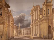 Le tableau dit de La Place publique est l’un des décors de répertoire commandé par Louis-Philippe en 1836 pour le théâtre de la Reine et livré par Ciceri. Il était, selon les inventaires, composé de dix châssis, de cinq frises de ciel et d’une toile de fond.
