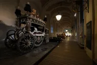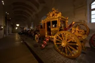 Conçus pour frapper les esprits,les carrosses de Versailles sont des chefs-d’œuvre d’art total. D’un luxe ostentatoire, ornés à profusion d’ors et de sculptures, ils ont été réalisés par les meilleurs artistes de la Cour : architectes, menuisiers, sculpteurs, ébénistes, bronziers, ciseleurs, doreurs, tapissiers, brodeurs, passementiers etc. Les visiteurs découvriront au plus près ces voitures de grand apparat, comme les berlines du mariage de Napoléon Ier, le carrosse du sacre de Charles X, le char funèbre de Louis XVIII, mais aussi des harnais richement garnis de bronze doré, des chaises à porteur, les petits carrosses des enfants de Marie-Antoinette et une étonnante collection de traineaux de fantaisie réalisés sous le règne de Louis XV.
