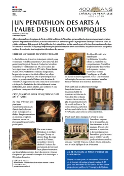 Le Pentathlon des Arts est un événement culturel pensé comme une véritable compétition. Cette idée avait déjà germé dans l'esprit de Pierre de Coubertin, lui-même médaillé d'or en littérature en 1912 à l'occasion des Jeux olympiques au début du XXe siècle. Entre février et juin 2023, pendant une semaine chaque mois, les participants seront invités à célébrer les valeurs communes au sport et aux arts en prenant part à des ateliers organisés dans le Château et le domaine de Versailles. Chaque semaine sera consacrée à un domaine artistique. Le Pentathlon des Arts s'adresse à toutes les familles, aux jeunes adultes, aux scolaires et aux publics du champ social et handicap.