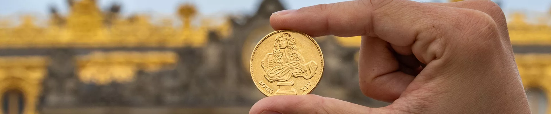 En donnant 8 € en plus de votre billet, contribuez au rayonnement et aux restaurations patrimoniales du château de Versailles. Pour cette occasion, vous recevrez en remerciement un jeton, en édition limitée créée par la Maison Arthus-Bertrand, illustrant le buste de Louis XIV sculpté par Le Bernin.