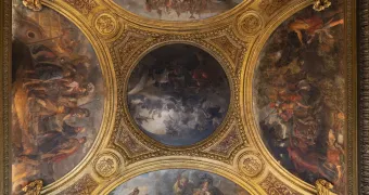 La restauration du plafond du salon de Diane débutée en octobre 2024 s'achève, révélant la splendeur retrouvée de sa voûte peinte et de ses stucs. Découvrez les coulisses du travail prodigieux des restaurateurs de peinture.