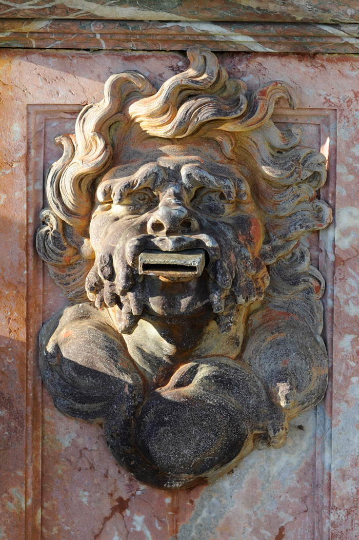 Dès sa création, de multiples effets d’eau animaient ce bassin édifié en cascade, dont chaque degré forme un effet de nappe, alimentant ensuite la série de vasques de marbre blanc. Des jets obliques jaillissaient des quatre masques représentant les vents (Borée, Euros, Auster, Zéphyr) et ornant la paroi du degré inférieur. La polychromie des marbres se trouvait alors magnifiée par le scintillement des eaux.