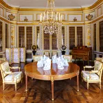 Découvrez l’atmosphère intime et le décor raffiné des pièces à vivre : la salle à manger, le cabinet de la Pendule et le salon de jeux.