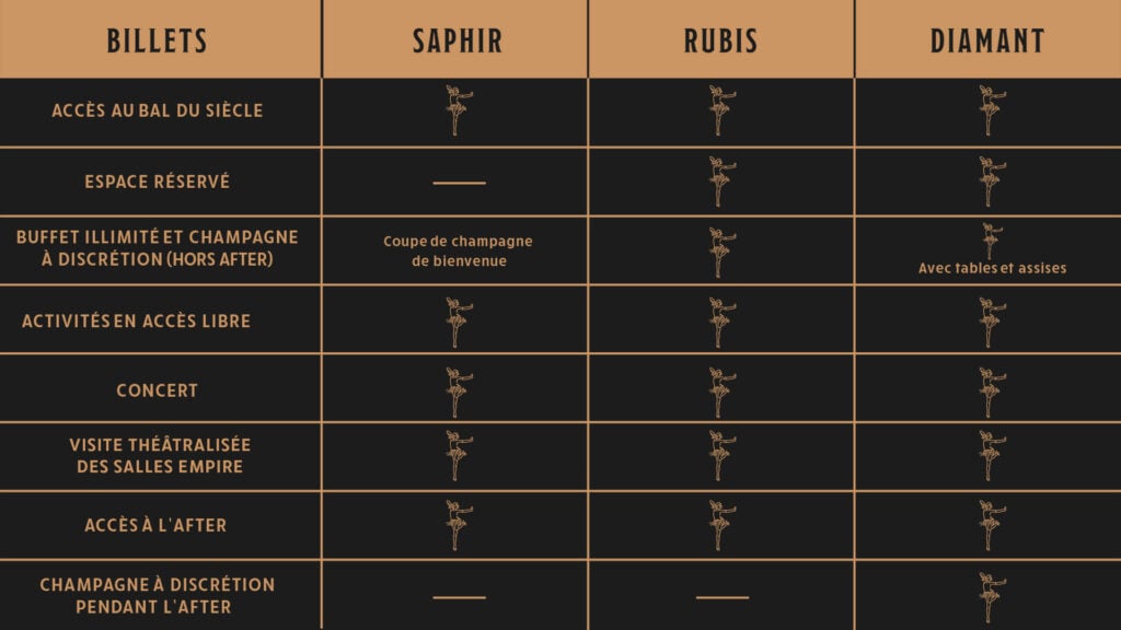 - Pendant cette soirée, vous êtes susceptibles d'être filmés et photgraphiés. Château de Versailles Spectacles considère que vous abandonnez tout recours en cas d'utilisation de ces images pour l'illustration ou la promotion du Bal du Siècle.