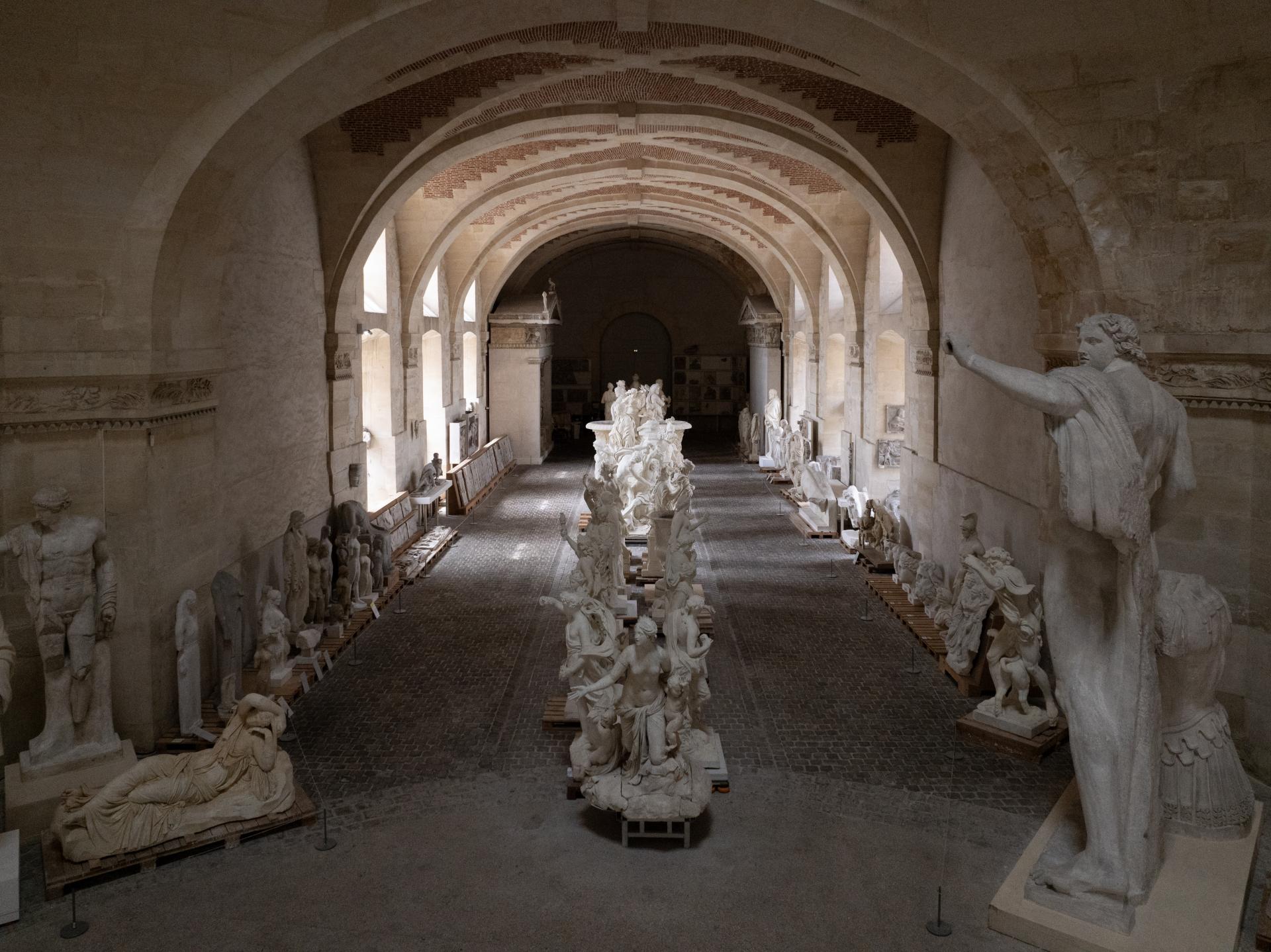 La galerie abrite deux collections exceptionnelles : un vaste ensemble de moulages du XVIIe au XXe siècle issus de la Gypsothèque du département des Antiquités grecques, étrusques et romaines du musée du Louvre ainsi qu’une soixantaine de sculptures en marbre des jardins de Versailles, chefs-d’œuvre du XVIIe siècle, ici mis à l’abri.