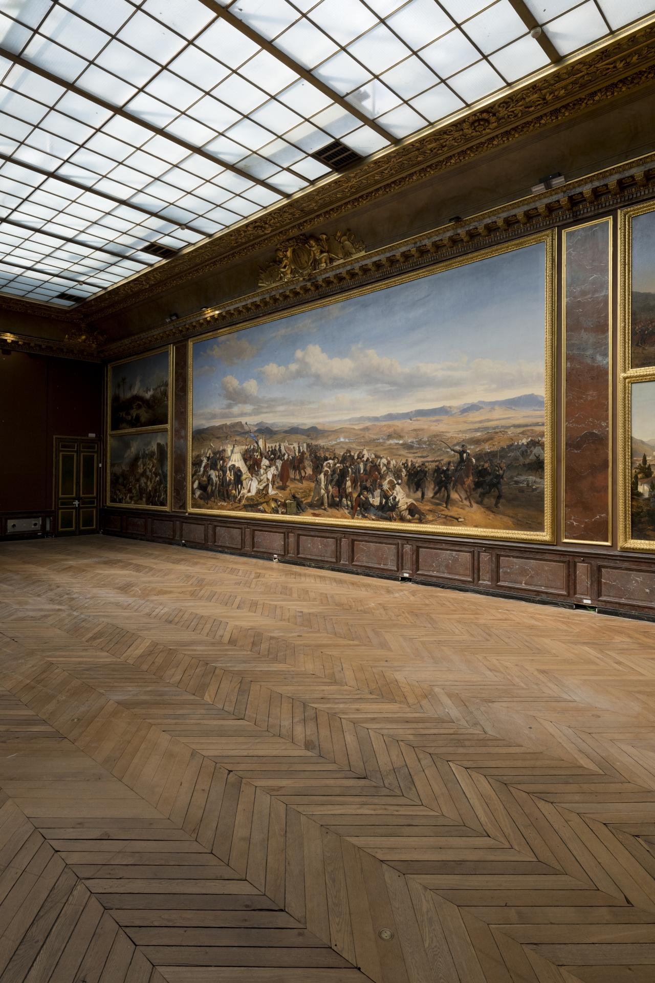 Trente-cinq tableaux monumentaux et quatre-vingt-deux bustes retracent l'histoire militaire de la France, depuis Tolbiac jusqu'à Wagram. Avec cette vaste galerie, pièce maîtresse du musée d’Histoire de France, Louis-Philippe rendait hommage à la bravoure des Français dans une continuité historique qui dépasse les querelles politiques.