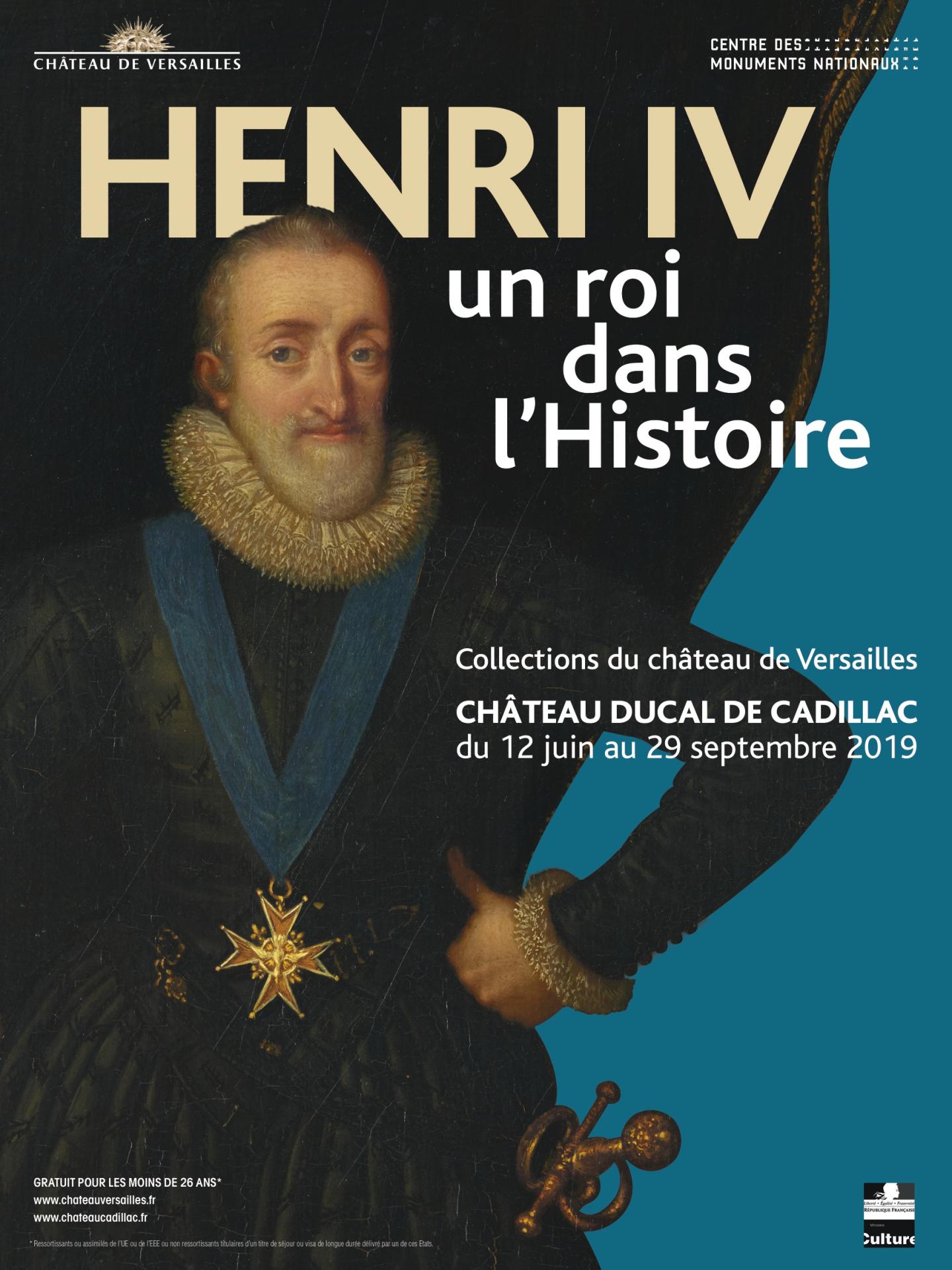 En partenariat avec le Centre des monuments nationaux (CMN), cette exposition consacrée à la figure de Henri IV (1553-1610) permet de découvrir des œuvres jusqu'à présent conservées en réserves. C'est dans le magnifique écrin du château ducal de Cadillac que les collections du musée national des châteaux de Versailles et de Trianon seront présentées.