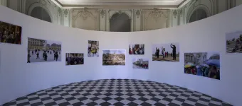 Martin Parr, fidèle à sa démarche, trouve dans la foule cosmopolite des visiteurs de Versailles la source d’images tendres et ironiques, aux couleurs vives, qui occupent le Pavillon Frais ouvert pour la première fois au public (Jardin français du Petit Trianon).