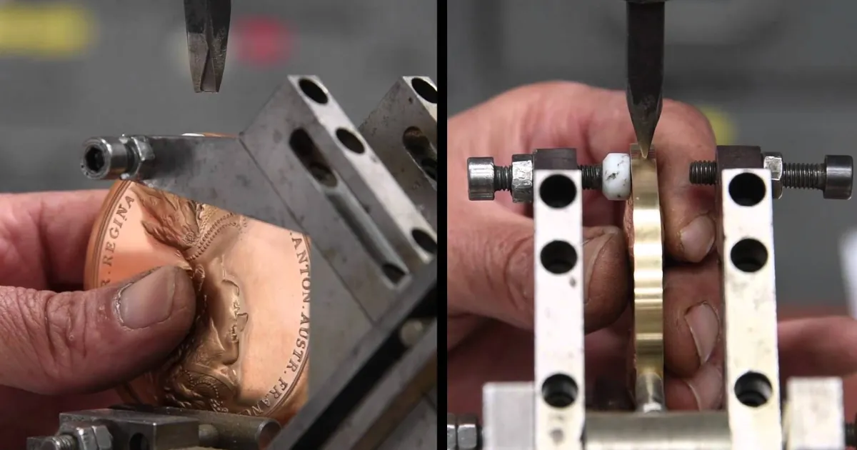 Entre savoir-faire à la main ancestral et techniques modernes, la maison Arthus-Bertrand a accordé un soin tout particulier à la création de chaque médaille. Du moulage en plâtre au vernissage, la médaille passe de nombreuses étapes, frappes, chauffages et détourage, avant d’être terminée et installée dans le « Cabinet des médailles du Roy », reconstitué dans la Librairie des Princes.
