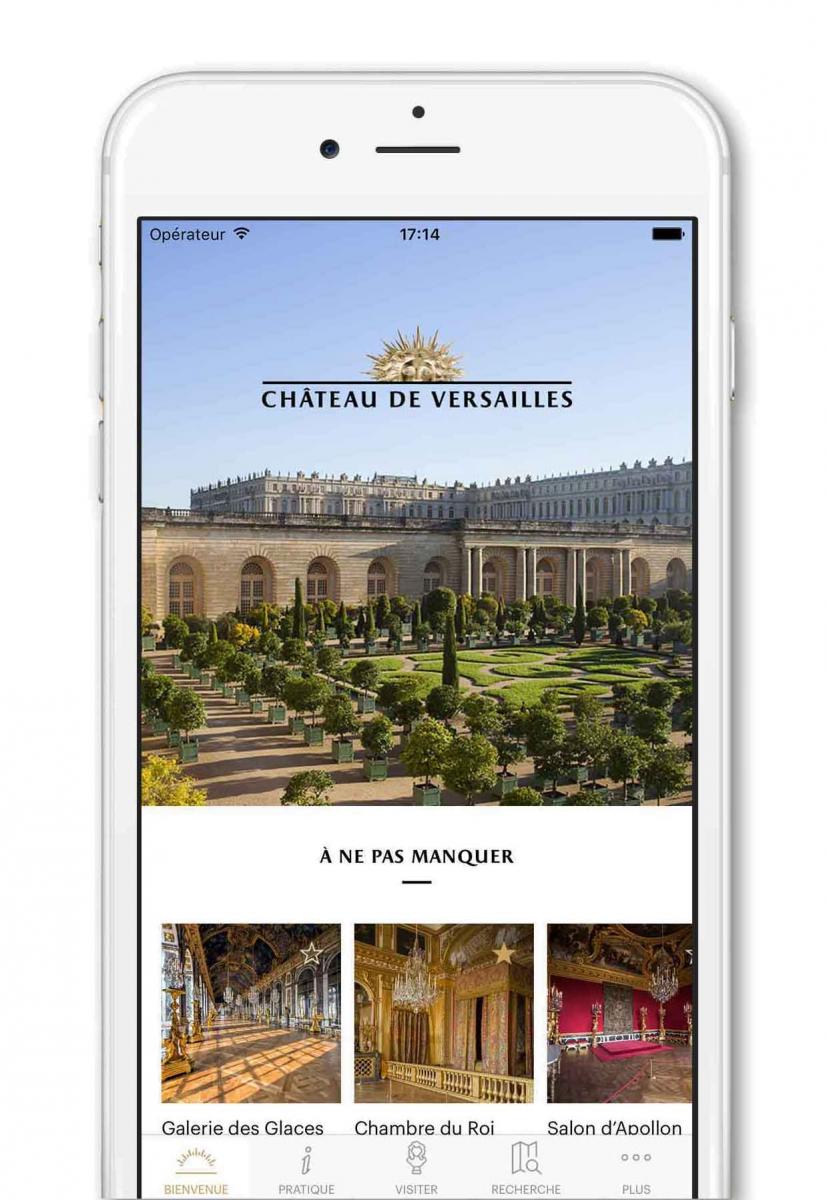 L'application mobile du Château (entièrement gratuite) vous permet de visiter Versailles avec plus de 15 parcours audios : Grands Appartements, Galerie des Glaces, Salle des Croisades, ...