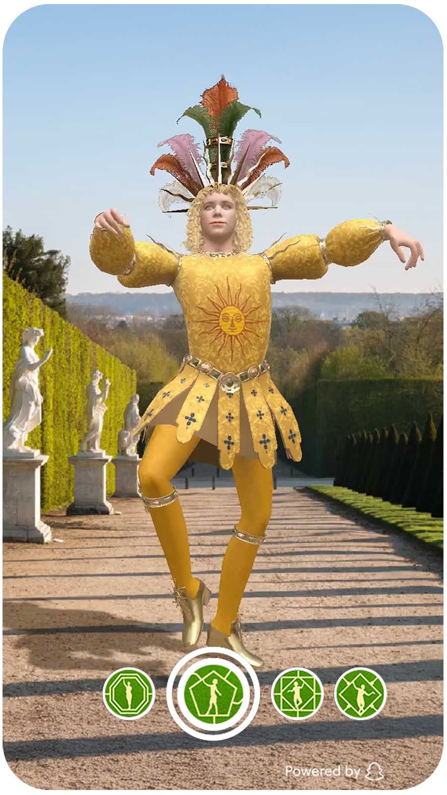 Grâce à l’AR Studio Snapchat Paris et aux technologies de réalité augmentée, le château de Versailles vous permet de revivre l’art de la danse baroque. Explorez quatre grandes formes de danses historiques, en expérimentant des Lenses Snapchat qui donnent vie aux pas, aux gestes et aux costumes des bals de cour.