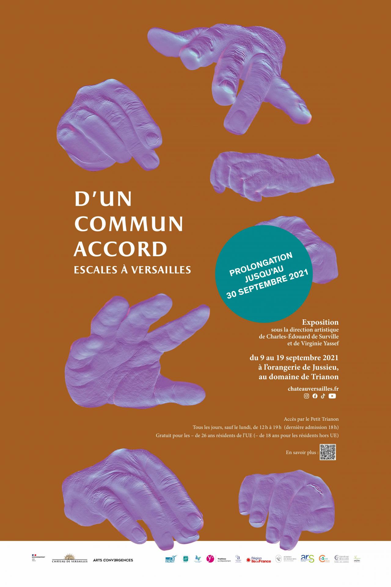Pour cette quatrième édition d’Escale à Versailles, le château de Versailles présente « D’un commun accord », en partenariat avec l’association Arts Convergences. L’exposition est visible du 9 au 30 septembre 2021, à l’Orangerie de Jussieu, au Domaine de Trianon aux horaires d'ouverture du domaine. Quatre installations rendent compte du dispositif de création artistique qui a fait intervenir plus d’une centaine de personnes en situation de handicap psychique. Plus grandes que nature, les œuvres émettront des sons et dialogueront entre-elles et avec leur environnement, créant ainsi un parcours visuel et sonore dans un lieu chargé de symbolique.