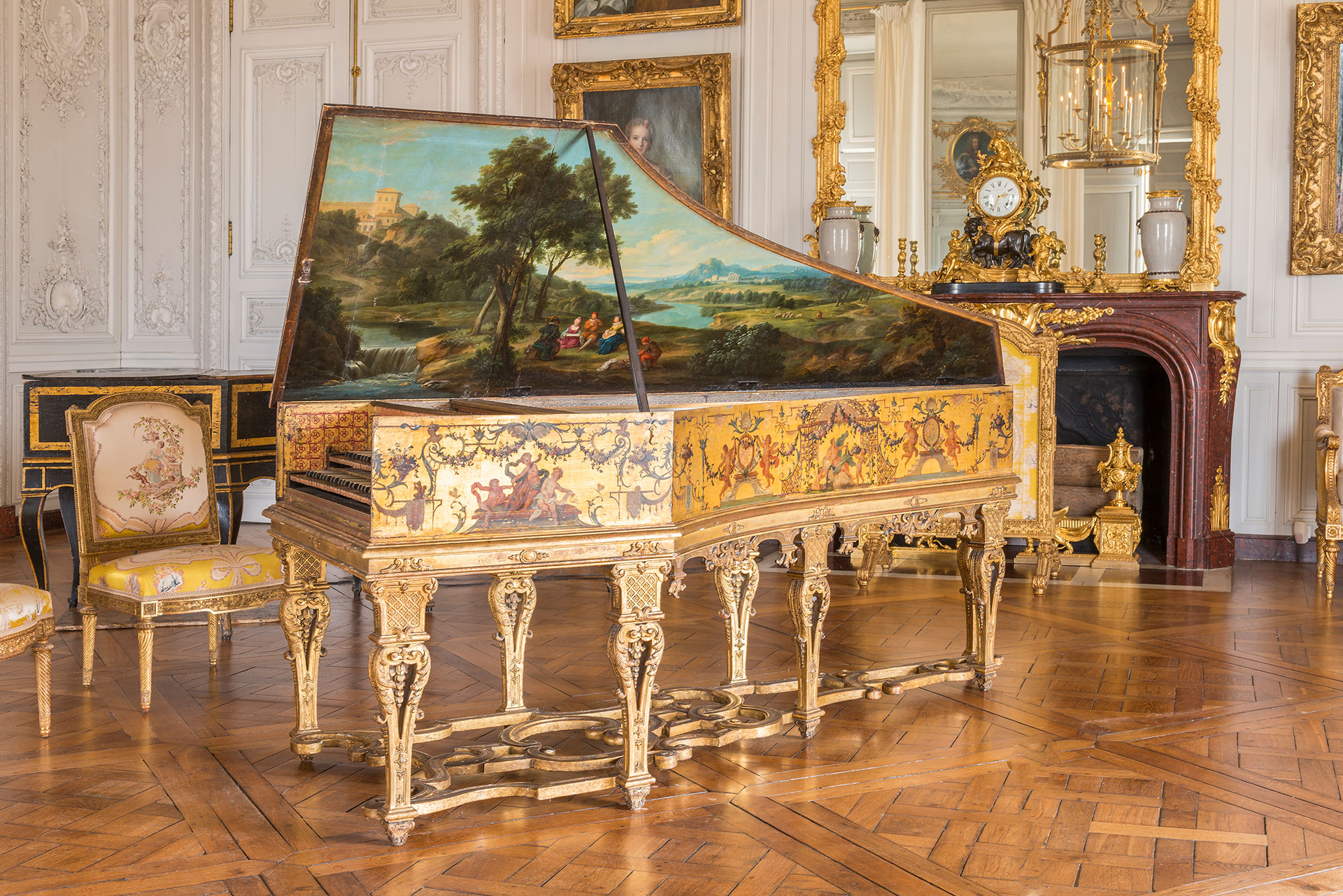 Déformation professionnelle oblige, deux « objets » bien sûr ont retenus plus particulièrement mon attention, il s’agit des deux somptueux clavecins historiques de Rückers et Blanchet, désormais dans les appartements de Mesdames. J’ai découvert le Rückers lorsque j’avais quatorze ans, en visitant pour la première fois le Château avec mon père. Je suis tombé en amour comme on disait au XVIIème siècle. Je n’arrivais plus à avancer dans la visite, tellement j’étais subjugué et émerveillé par cet instrument. Depuis, j’ai eu la grande chance de pouvoir jouer plusieurs fois ces clavecins grâce à la l’accueil chaleureux et bienveillant de Monsieur Hans, conservateur au château, et je pense que comme Lamartine, si vous me permettez cet anachronisme, oui, ces objets ont définitivement une âme.