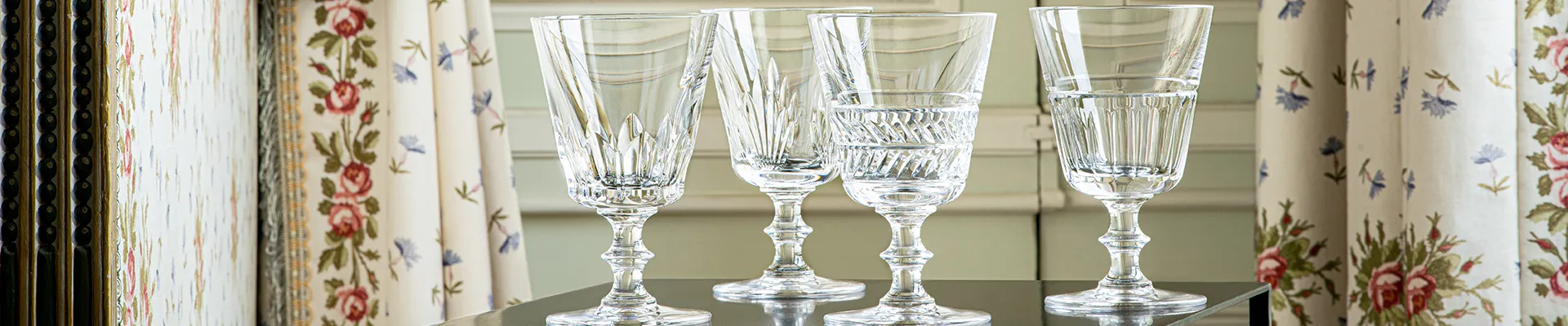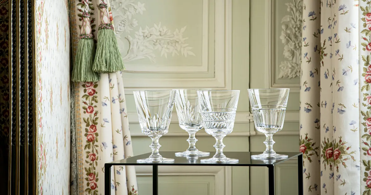 Les paraisons des verres à pied « Galerie des reines » évoquent celles des gobelets de « Galerie des rois », inspirant ainsi un pas de deux royal. Une table complète, animée par l’Histoire mais ancrée dans la modernité, et dépareillée à l’envi.