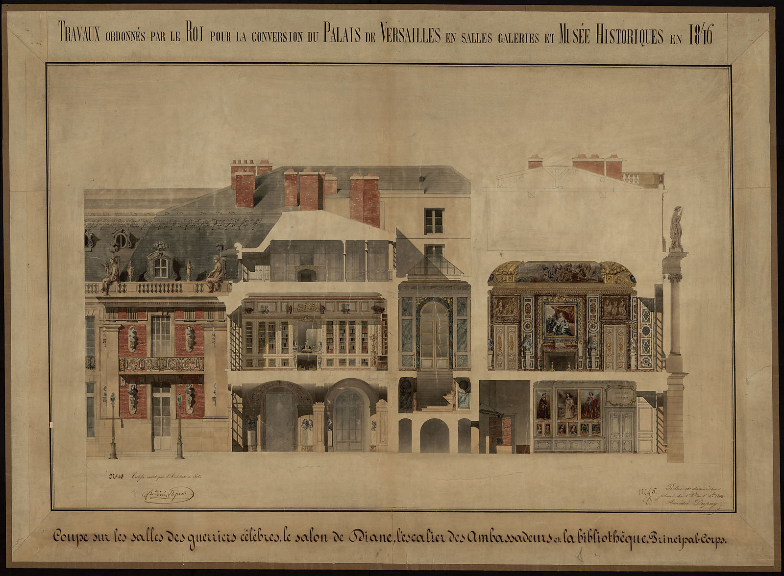 Comment ne pas évoquer les archives ? Elles constituent un ensemble patrimonial essentiel et je sais la chance que cela représente d’en avoir la responsabilité. Elles ouvrent l’accès au passé du château, me plonger dedans pour découvrir tel ou tel trait de son histoire me procure toujours autant de plaisir. La passion est intacte ! Je ne distingue pas de document en particulier, mais disons que la collection de plans de l’architecte Frédéric Nepveu sous le règne de Louis-Philippe fait sans doute partie de ce que nous conservons de plus précieux. Nous faisons encore des découvertes inédites, comme ce fut le cas il y a quelques années pour les devis demandés par Napoléon en 1806 pour faire de Versailles l’une de ses résidences. Chaque document d’archives s’inscrit dans un contexte qu’il faut comprendre et retracer, c’est un travail inépuisable.