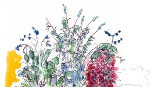 Deux œuvres de Cotelle montrent des parterres de fleurs très denses devant le péristyle du Grand Trianon. Entre sources documentaires et poésie, elles ont inspiré de nouvelles compositions pour la belle saison.