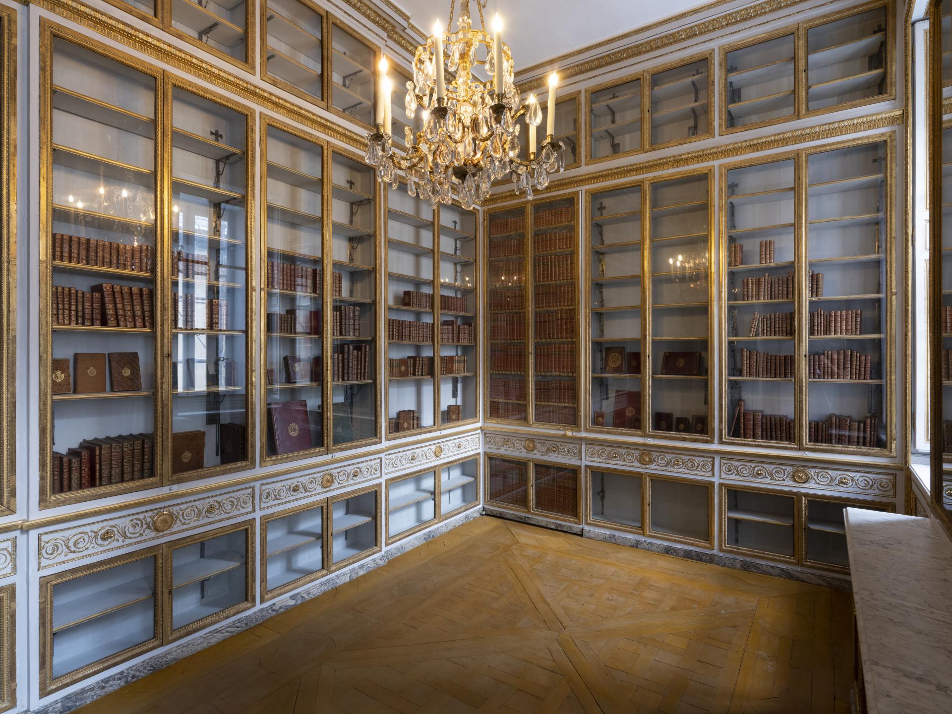 Pièce empreinte d'une forte singularité, la bibliothèque de la Reine n'a connu aucune restauration d'envergure depuis le XIXe siècle. Après plusieurs expertises qui concluent à une décrépitude du décor – fissures de certains panneaux, de l'écaillement des dorures ou encore du délabrement du plafond –, la pièce est finalement restaurée entre 2017 et 2020 ; permettant de retrouver le prestige de cette pièce qui nous est parvenue pratiquement intacte, telle qu'elle fut livrée à Marie-Antoinette en 1781 par l'architecte Richard Mique.