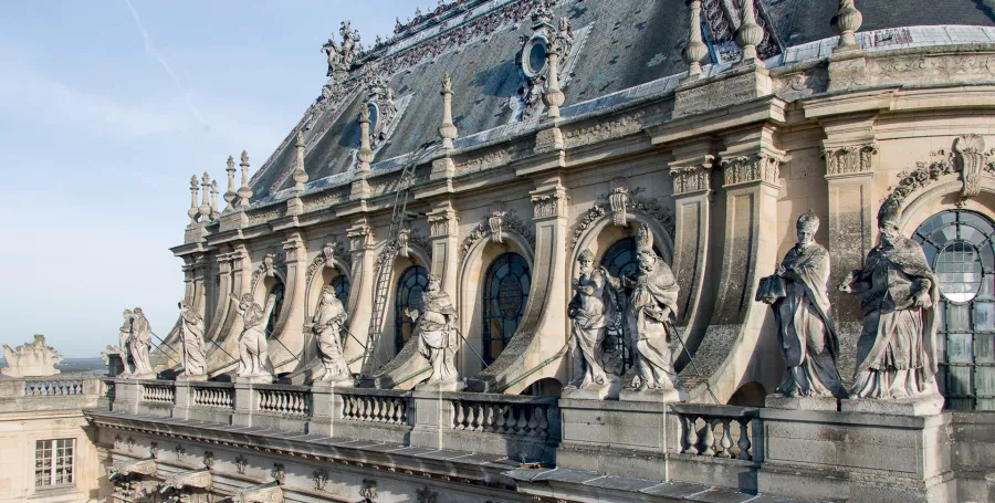 Plus de quarante ans après sa dernière restauration d'envergure, la Chapelle royale a subi une intervention urgente sur la couverture, les parements, la statuaire et les vitraux. Revivez ici la restauration de ce chef-d'oeuvre architectural.