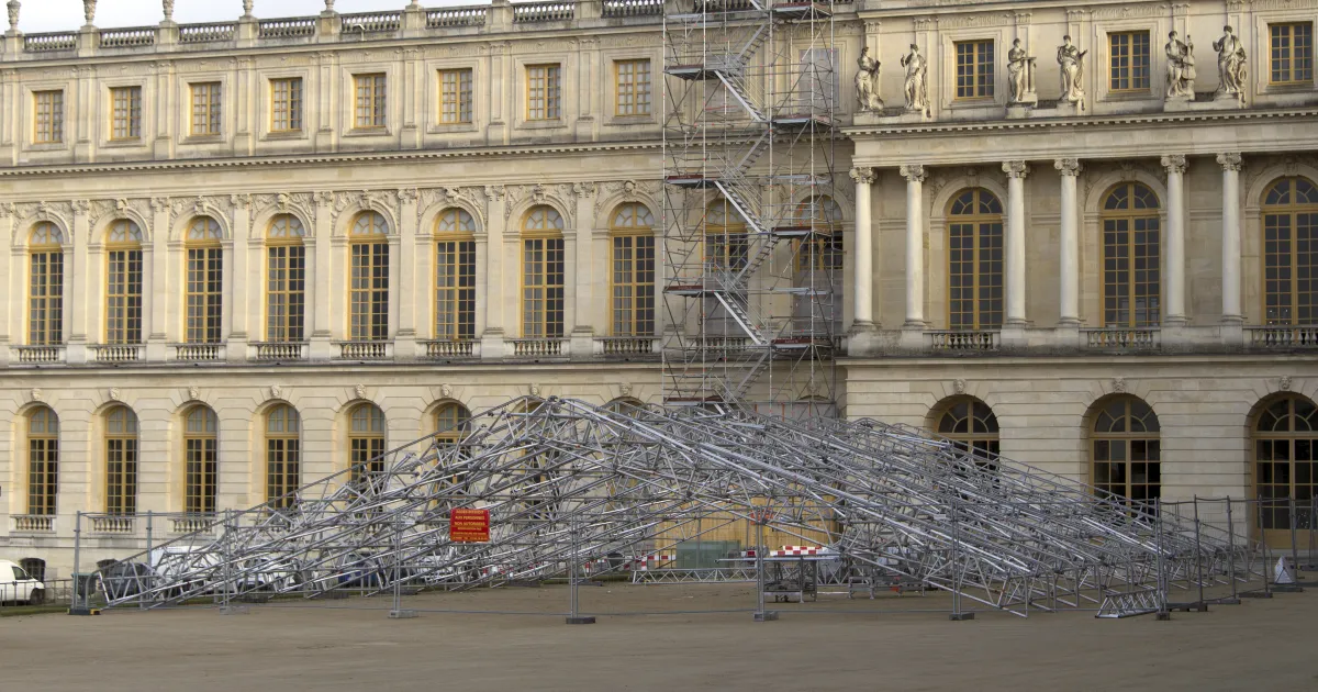 Le travail des monteurs relève parfois d’un exercice de haute voltige. Le chantier de la Chapelle Royale n’échappe pas à cette règle. Par exemple, le travail sur les baies de la Chapelle nécessitait de pouvoir accéder à certaines parties situées à l’intérieur du monument. Cependant, pour ne pas abîmer le sol, il était impossible d’y prendre appui. Il a été décidé de passer des tubes de métal par les fenêtres depuis l’échafaudage extérieur afin d’y accrocher des éléments qui permettaient de monter une nouvelle structure intérieure, sorte de corniche artificielle.