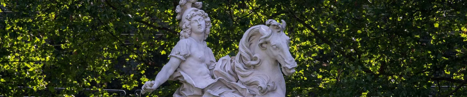 Qui s’est aventuré jusqu’à l’extrémité de la pièce d’Eau des Suisses ? On y découvre une réplique de la statue équestre du roi, une pièce achevée, en 1677, par Le Bernin. Fougue, force, fantaisie : ce chef-d’œuvre incontestable a pourtant déplu au monarque et le bloc de marbre fut retouché, rebaptisé puis relégué... La disgrâce royale frappait même les œuvres d’art ! Aujourd’hui, la statue attend, un peu solitaire et oubliée, dans l’Orangerie tandis que sa copie n’est plus, pour les visiteurs qui regardent dans sa direction, qu’une tache blanche difficile à identifier. C’est bien dommage.