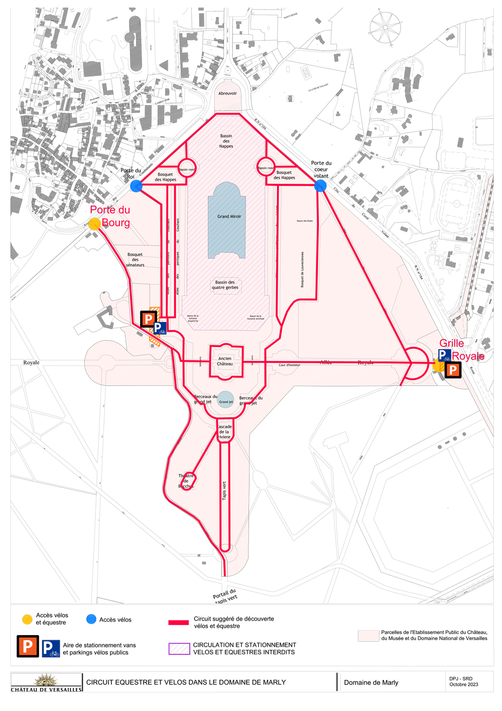 L'accès à vélo aux domaines de Versailles et de Marly est gratuit et autorisé tous les jours de l'année.