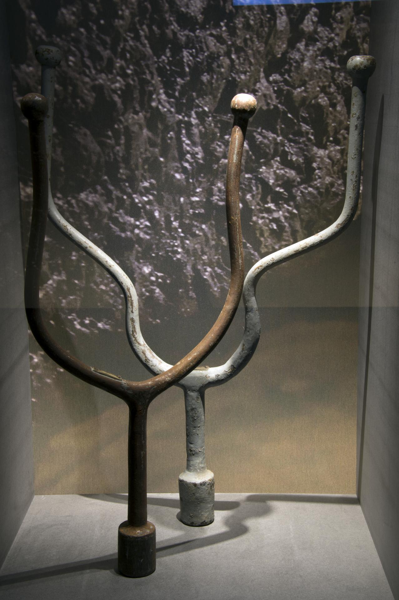 Vue générale de l'exposition, deux "clefs lyre" servant à ouvrir les fontaines