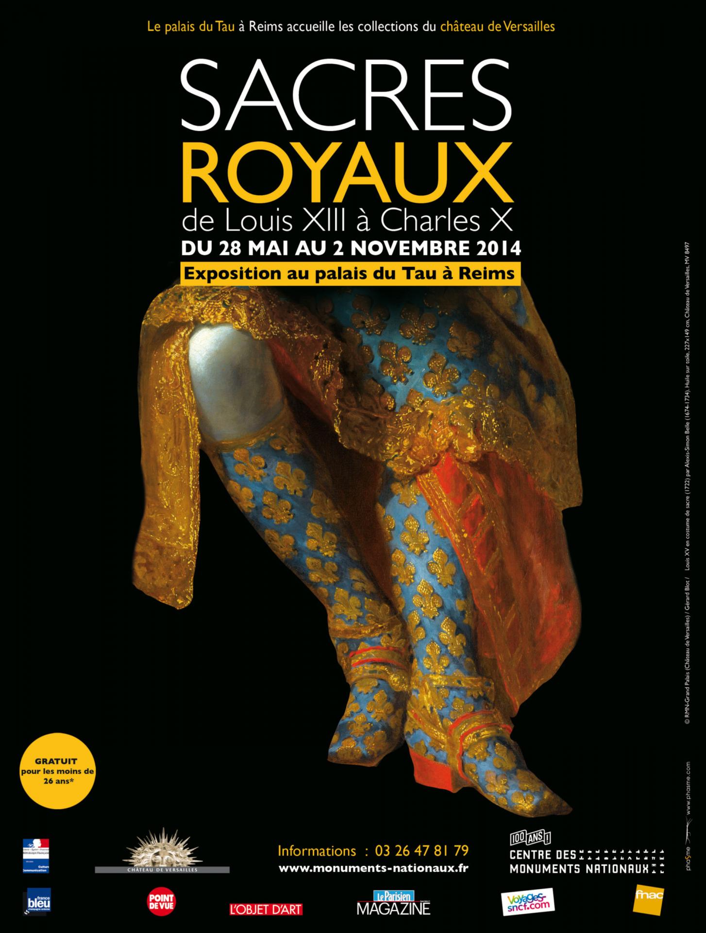 Première grande étape de ce partenariat entre le château de Versailles et le CMN, l'exposition "Sacres royaux, de Louis XIII à Charles X" a été présentée au palais du Tau, à Reims, entre mai et novembre 2014.