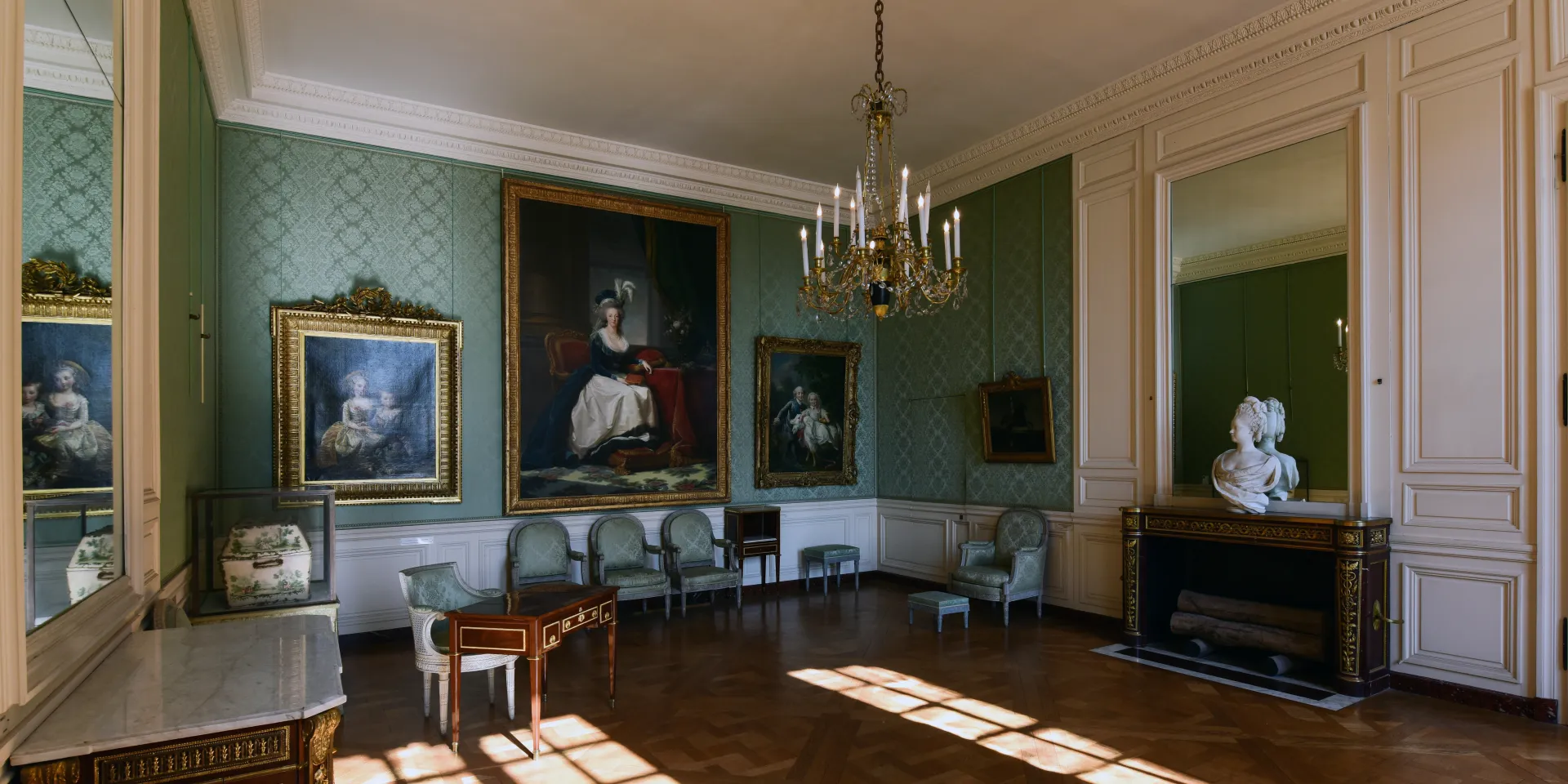 Dans les autres pièces sont exposés des portraits de membres de la famille royale et de leur entourage. Parmi eux, le grand tableau de Martin Van Meytens représentant l’empereur autrichien François Ier, Marie-Thérèse et leurs enfants, peint en 1755, l’année de la naissance de Marie-Antoinette, représentée ici dans une bougie.