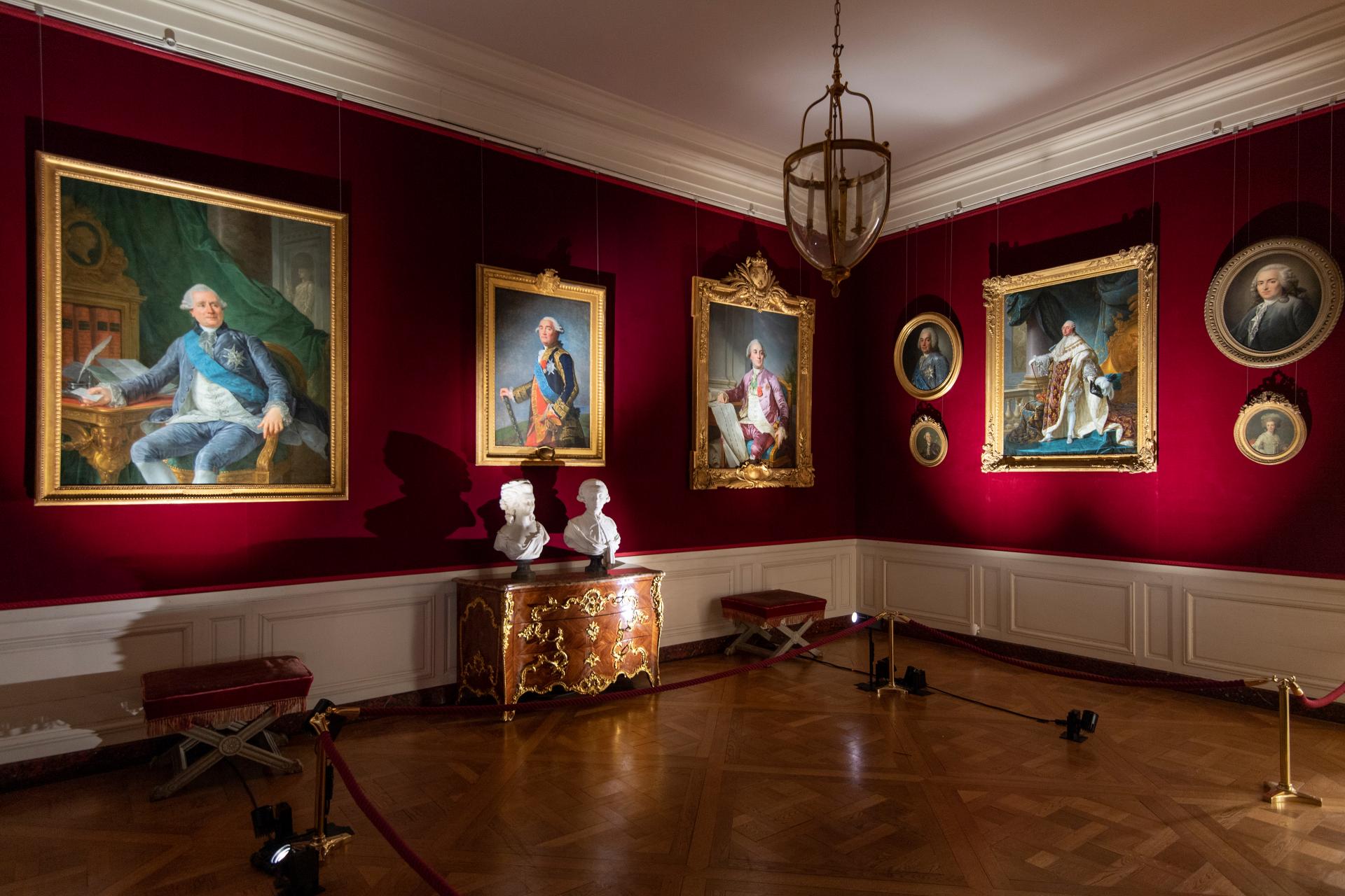 L’antichambre de l’appartement commémore l’accession de Louis XVI au trône, dont le portrait en habits royaux peint par Joseph Siffrède Duplessis est entouré de ceux de ses frères, le comte de Provence et le comte d’Artois, peints par François Hubert Drouais, et de son cousin le duc d’Orléans, peint par Antoine Callet. Ils sont aussi représentés dans la grande peinture de Gabriel François Doyen de Louis XVI recevant l’hommage des chevaliers de l’ordre comme leur grand maître, le 13 juin 1775.