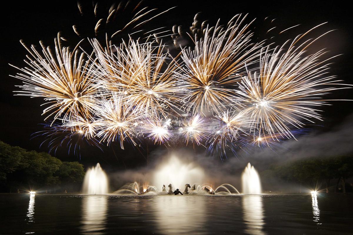 Les soirs de Grandes Eaux Nocturnes, à la tombée de la nuit, les jardins de Louis XIV deviennent un surprenant parcours visuel et sonore. Le visiteur découvre bassins et bosquets mis en eau et en lumière, mis en scène et en couleur, avec un éblouissant feu d’artifice en final. Juste avant, les visiteurs ont la possibilité d’assister à la Sérénade Royale avec la Compagnie de Danse, un parcours de 40 minutes dans les Grands Appartements du Roi.