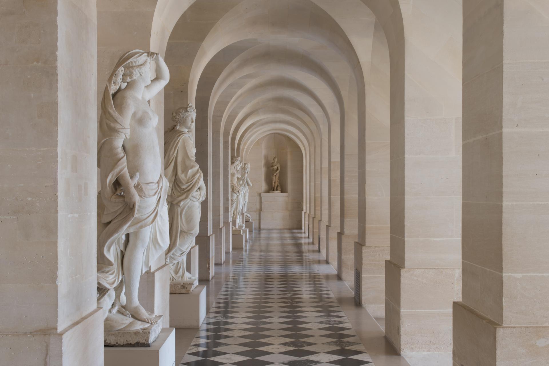Dans la continuité des appartements de la Dauphine puis du Dauphin se trouve la Galerie basse. Construite par Louis Le Vau lors des premiers travaux d’agrandissement du Château en 1669, elle est en réalité composée de deux galeries parallèles, séparées par un emmarchement rattrapant la différence de niveau entre l’ancienne partie du Château de Louis XIII et le château-neuf de Louis XIV.