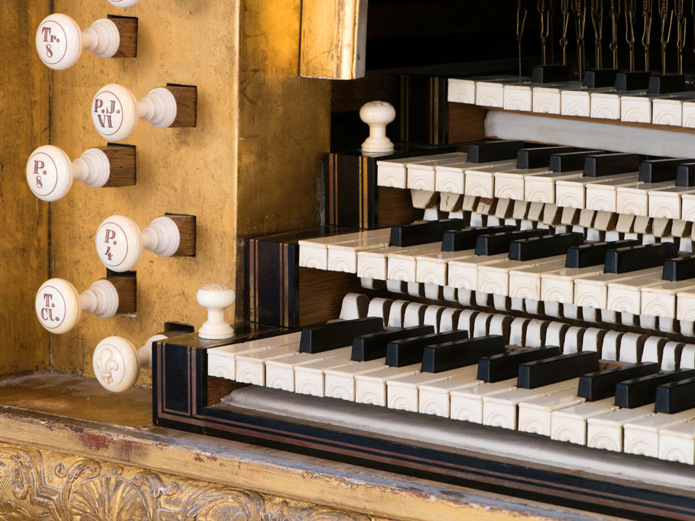 Au-dessus de l’autel, autour de l’orgue de Clicquot orné d’un beau Roi David en relief et dont les claviers ont été tenus par les plus grands maîtres comme François Couperin, la musique de la Chapelle, renommée dans toute l’Europe, chantait quotidiennement des motets tout au long de l’office.