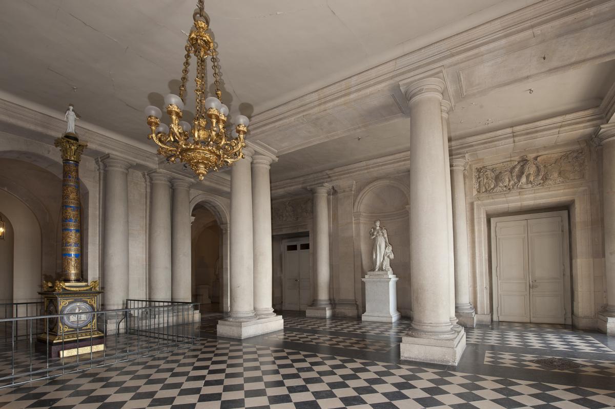 La grande porte donnant sur la rue de l’Indépendance américaine est celle encore utilisée par le public et les journalistes pour assister aux séances du Congrès, les députés et sénateurs entrant par la grande cour du Château et la cour des Princes. Le vestibule est orné de 5 statues appartenant aux collections historiques du Château, représentant le philosophe René Descartes, le poète François de Malherbe, le moraliste Michel de Montaigne, le penseur politique Montesquieu, et le peintre Nicolas Poussin.