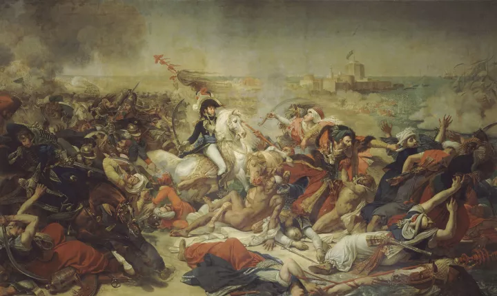 Aux deux œuvres de David, s’ajoute l’énorme Bataille d’Aboukir, le 25 juillet 1799, de Gros, commandée par Joachim Murat, le beau-frère de l’empereur, quand il était roi de Naples. Elle commémore l’une des plus mémorables charges de cavalerie de sa jeunesse, lors de la campagne d’Egypte.