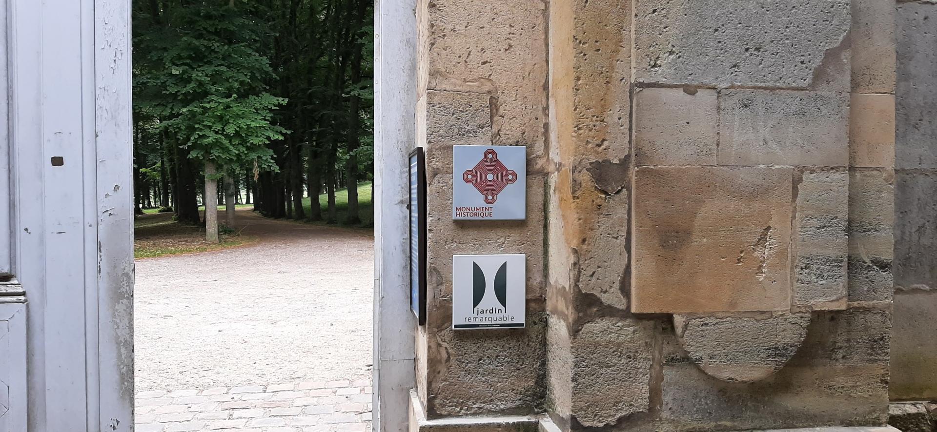 Les plaques signalétiques du classement Monument Historique et du label Jardin Remarquable