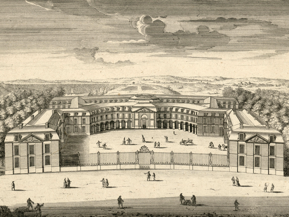 Face au Château, Louis XIV lance le plus grand chantier royal jamais entrepris pour loger des chevaux. La Petite Écurie et la Grande Écurie, édifiées par Jules Hardouin-Mansart, ferment la place d’Armes et marquent le départ de trois grandes avenues. L’emplacement et l’ampleur des Écuries royales témoignent de l’importance accordée au cheval sous l’Ancien Régime. Les deux bâtiments sont de taille identique mais leurs plans diffèrent légèrement, leur dénomination ne tenant pas à leurs dimensions mais à leur affectation.