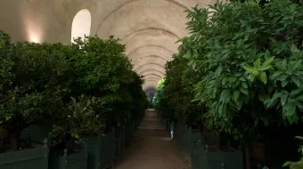 Le château de Versailles est doté d’une orangerie dès 1663, bâtie par Louis Le Vau. L’emplacement est excellent : orientée plein sud, elle est protégée du froid des vents dominants par sa position sous le parterre du Midi. Vingt ans plus tard, Jules Hardouin-Mansart double la longueur de cette première orangerie, ainsi que sa largeur, pour en faire un immense édifice. La galerie centrale est longue de plus de 150 mètres et sa voûte culmine à 13 mètres de haut. Deux galeries en retour s’achèvent sous les escaliers monumentaux des Cent-Marches qui jouent le rôle de contreforts à l’ensemble. Les murs, de 4 à 5 mètres d’épaisseur, les doubles vitrages des baies et l’exposition au Midi permettent de maintenir l’hiver une température qui ne descend pas au-dessous de 5° C.