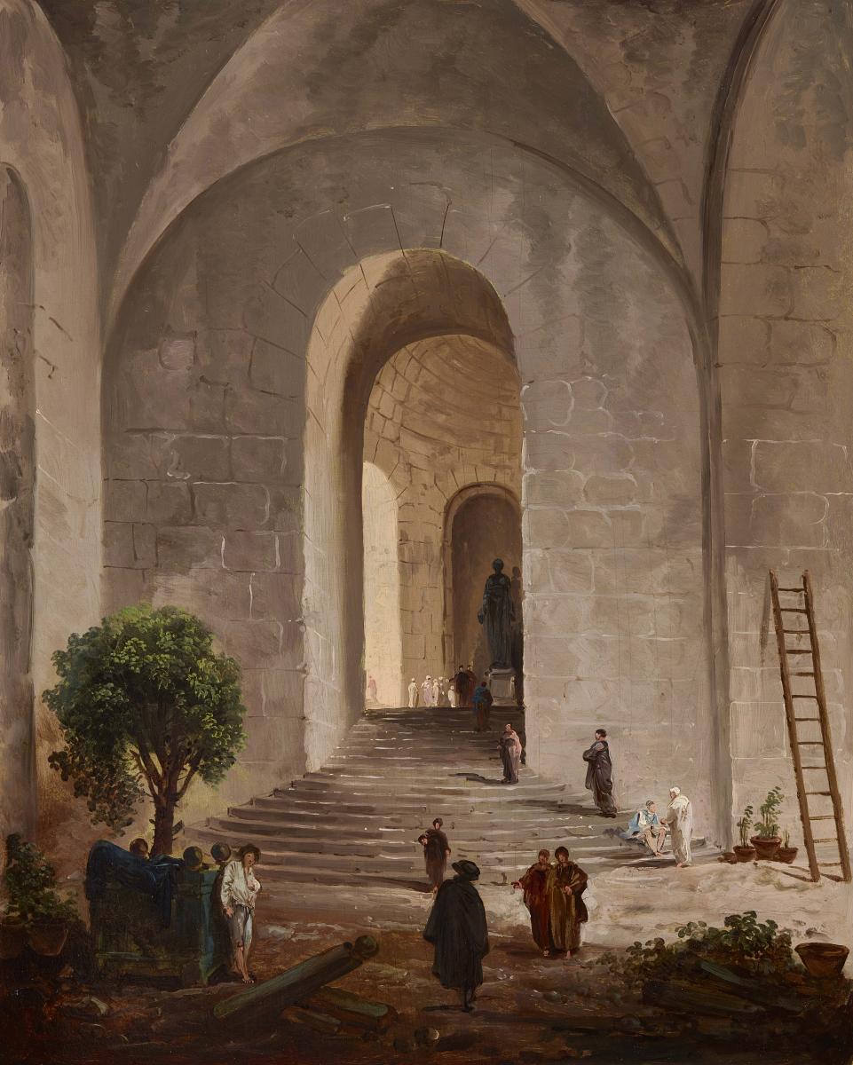 Peint par Hubert Robert à la fin du XVIIIème siècle, ce tableau montre la naissance de la nef de l'Orangerie où une statue d'Isis fut placée. Cette statue, issue des collections de Louis XIV, disparut de Versailles pendant la Révolution.