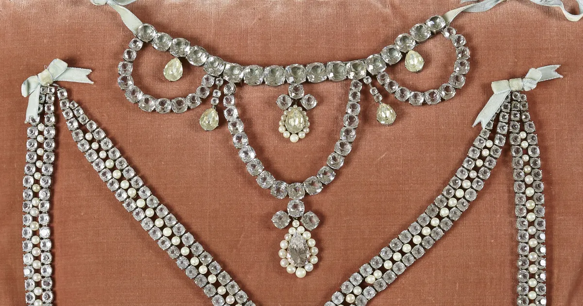Depuis plusieurs années, les joailliers de la Couronne, Böhmer et Bassenge, cherchent à vendre un somptueux collier de près de 650 diamants, pesant 2 800 carats. Ils l’ont proposé à Louis XVI en 1782, mais la reine l’a refusé. Son prix est en effet astronomique malgré une baisse à 1,6 million de livres ! Mme de La Motte en parle au cardinal, lequel accepte de servir de prête-nom pour la souveraine, moyennant un échelonnement du paiement en quatre versements sur deux ans. Les bijoutiers sont ravis de trouver enfin acquéreur. Ils remettent le collier au cardinal le 1er février 1785, lequel le donne à Mme de La Motte, qui disparaît avec ses complices.