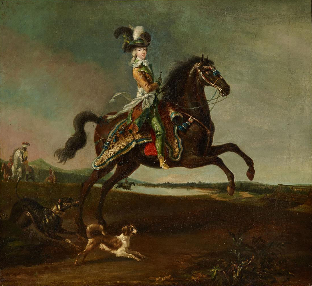 Un si grand nombre de chevaux pourvoit aux besoins d’une activité équestre intense, faite d’exercices au manège, de promenades et, surtout, de chasses. Les rois Bourbons ont tous été de fervents chasseurs, pratiquant entre 150 et 180 sorties par an. En 1761, Louis XV a ainsi 26 coureurs à son unique disposition. Lors de ses parties de chasse, il change plusieurs fois de monture : quatre pour la chasse au cerf, trois pour le sanglier, deux pour le chevreuil. Le goût des souverains pour l’équitation, à laquelle ils sont initiés dès leur plus jeune âge par les meilleurs écuyers, est partagé par nombre de dames de la Cour et Marie-Antoinette elle-même s’adonnera au genre avec passion. Lors des courses de bagues, lors des carrousels donnés à la Grande Écurie en 1685 et 1686, la société de Cour affirme l’importance de la culture équestre pour elle. Sur un plan politique, le roi doit se distinguer par l’excellence de sa pratique du cheval, symbole de son aptitude au bon gouvernement. Le roi cavalier est ainsi l’une des composantes de l’identité royale, relayée par l’art ou la littérature.