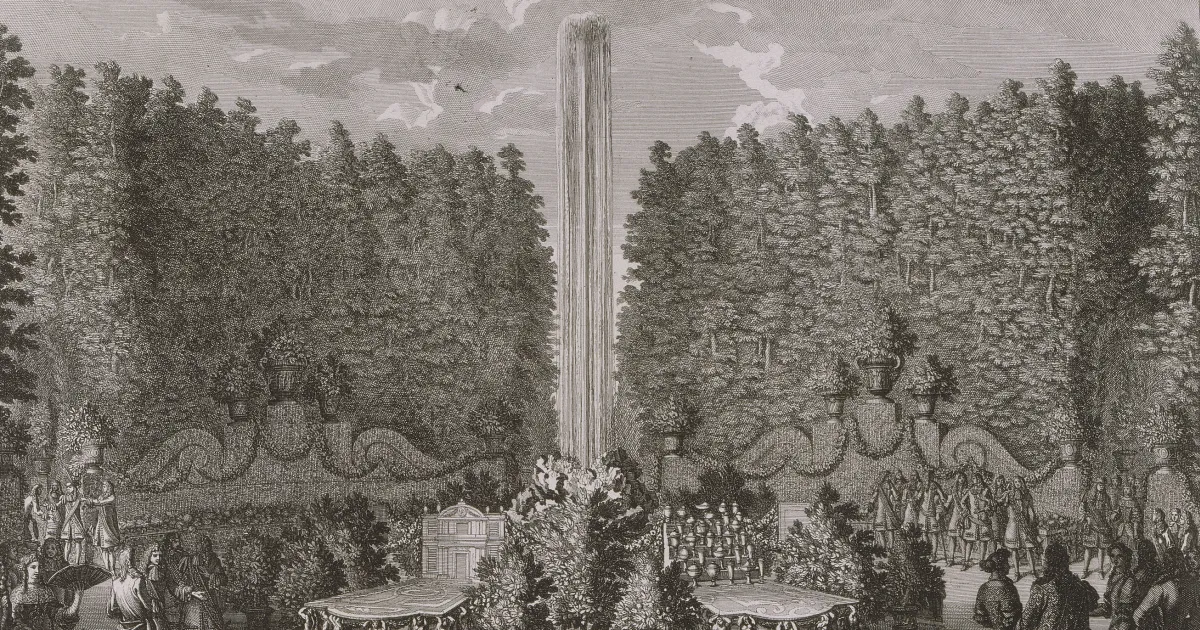 Venu de Saint-Germain, le roi ouvre son divertissement en fin de journée par la visite de sa dernière réalisation : le bassin du Dragon et son jet, le plus puissant des jardins. Il invite ensuite les convives à une splendide collation au bosquet de l’Étoile. Dressoirs et buffets emplis de montagnes de fruits, de viandes et de vases de liqueurs, composent le décor.