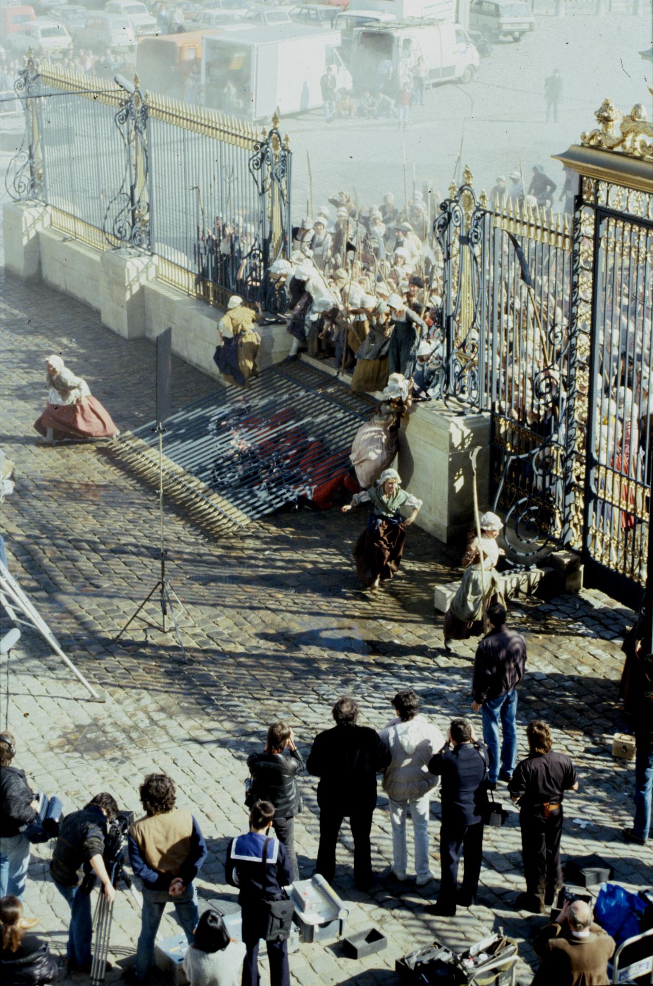Le tournage a principalement eu lieu en extérieur : dans le Parc et dans Cour Royale. La Grille Royale n'ayant pas encore été reconstruite (elle l'a été en 2004 grâce au mécénat de Monnoyeur), le tournage a nécessité la reconstitution de cette grille sur une partie seulement de la Cour : les acteurs (notamment des hommes habillés en femme) jouant la foule manifestant sous les fenêtres du Roi devaient abattre la grille, comme on peut le voir sur les photos du tournage ci-dessous.