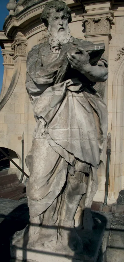 Traditionnellement considéré pour être l’auteur du premier des Évangiles, avant sa vocation il exerce le métier de collecteur d’impôts à Capharnaüm. Matthieu est invité par Jésus à le suivre afin de rejoindre ses disciples. Après l’Ascension, il part évangéliser l’Ethiopie, où il ressuscite le fils du roi et triomphe de deux mages qui se faisaient adorer comme des dieux. Il y meurt en martyr de nombreuses années plus tard, décapité, lapidé ou brûlé vif sur ordre du roi suivant. Il est considéré comme le saint patron des banquiers et des agents du fisc.