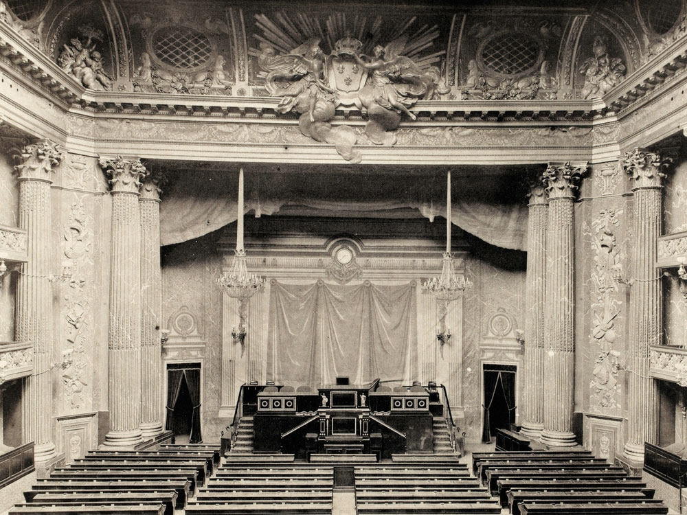 En février 1871, la dernière Assemblée nationale du Second Empire est élue à la hâte pour signer la paix avec l’Allemagne. Réunie une première fois à Bordeaux, elle souhaite rentrer à Paris, mais les troubles de la Commune ayant éclaté dans la capitale, il lui faut trouver une solution de repli en attendant le retour au calme. Après quelques hésitations, les députés votent leur transfert à Versailles et décident de tenir leurs séances dans l’Opéra royal du Château. La première session a lieu le 20 mars 1871.